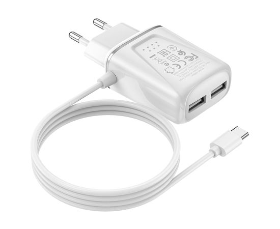 Сетевое зарядное устройство BOROFONE BA50A Beneficence 2xUSB с Кабелем Type-C, 2.1A, белый