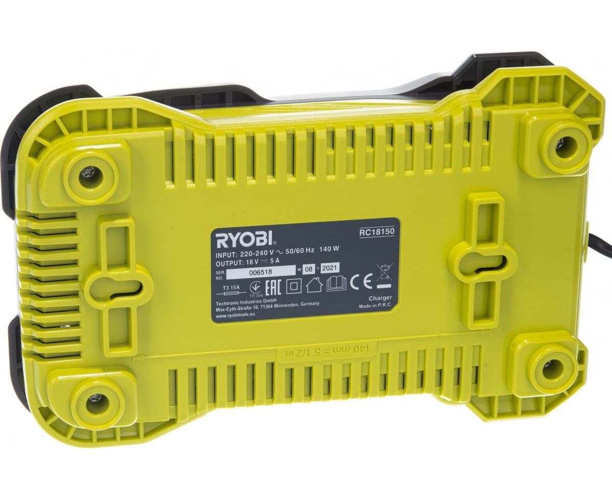 Зарядное устройство Ryobi ONE+ RC18150 5133002638 предназначено для аккумуляторов Li-Ion с напряжением 18 В. Оснащено светодиодными индикаторами, которые информируют о состоянии аккумулятора, и режимом поддержания заряда. Данное устройство заряжает аккумулятор емкостью 5.0 А*ч всего за один час.