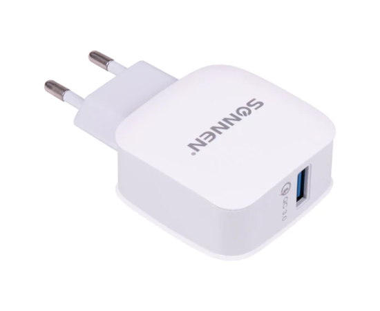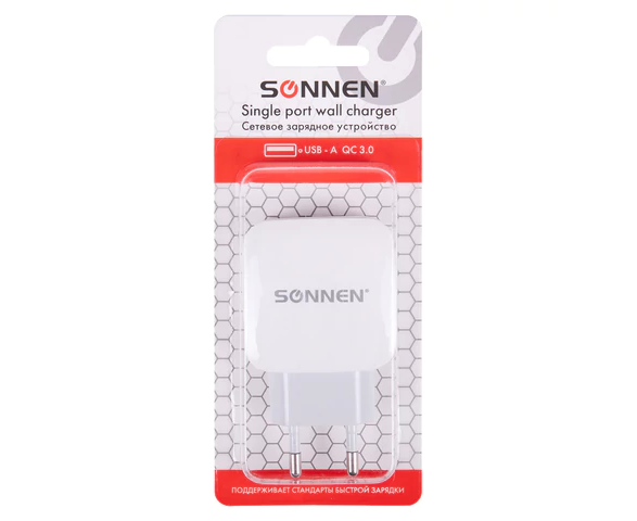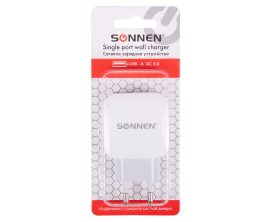 Зарядное устройство SONNEN 455506 USB QC 3.0 18Вт, 3А, белое