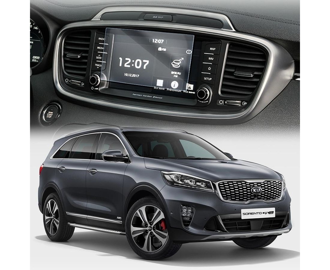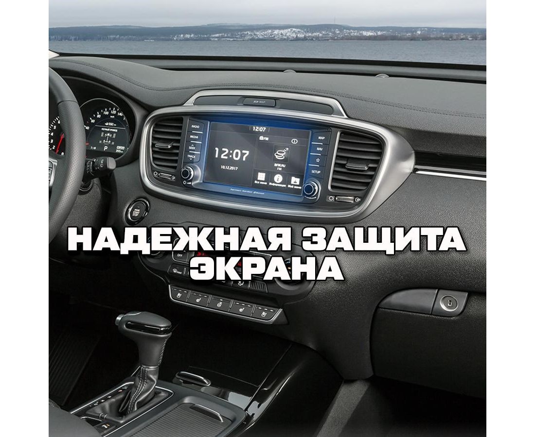 Защитное гибридное стекло Krutoff для экрана мультимедии KIA Sorento 3 Prime рестайлинг (8 дюймов) 2017 - 2020