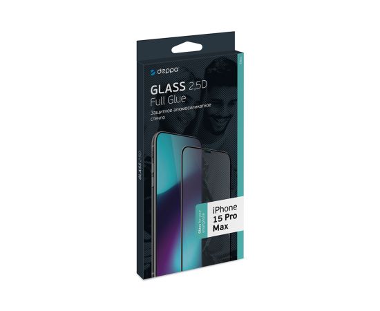 Защитное стекло 2,5D Classic Full Glue для Apple iPhone 15 Pro Max, 0.3 мм, черная рамка, прозрачное, Deppa, 62952