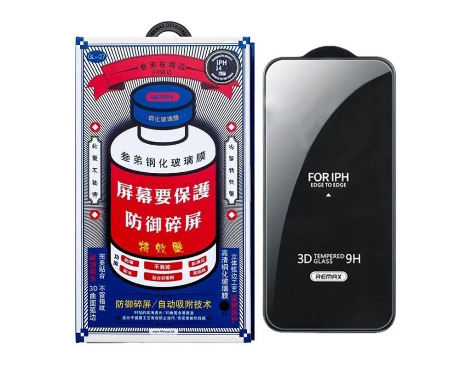 Защитное стекло 2D REMAX GL-27 для Apple iPhone 16 Pro, полная проклейка, 1 сторона, 0.26 мм, прозрачный, черный