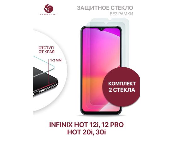 Защитное стекло (Комплект 2 шт) для Infinix Hot 12i, 20i, 30i, Infinix Hot 12 Pro без рамки, с отступом от краев, Инфиникс Хот 12i 20i 30i 12 Про