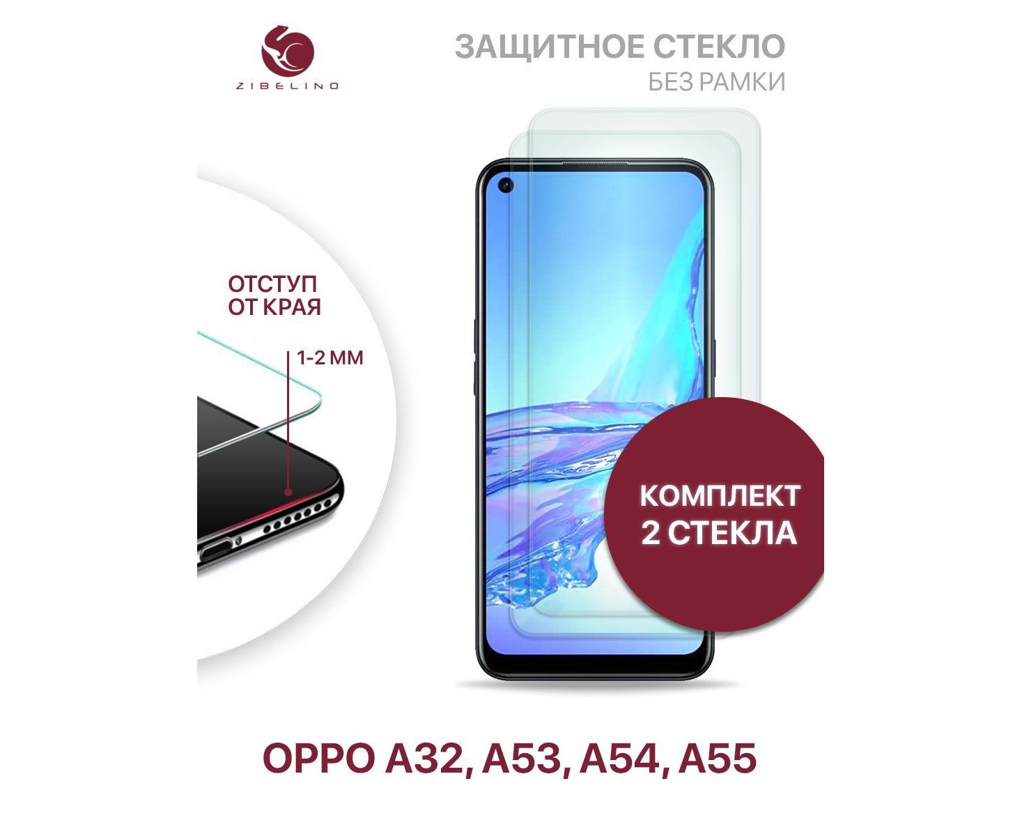 Защитное стекло (Комплект 2 шт) для Oppo A53, A54, A55, Oppo A32 без рамки, с отступом от краев, Оппо А53 А54 А55 А32