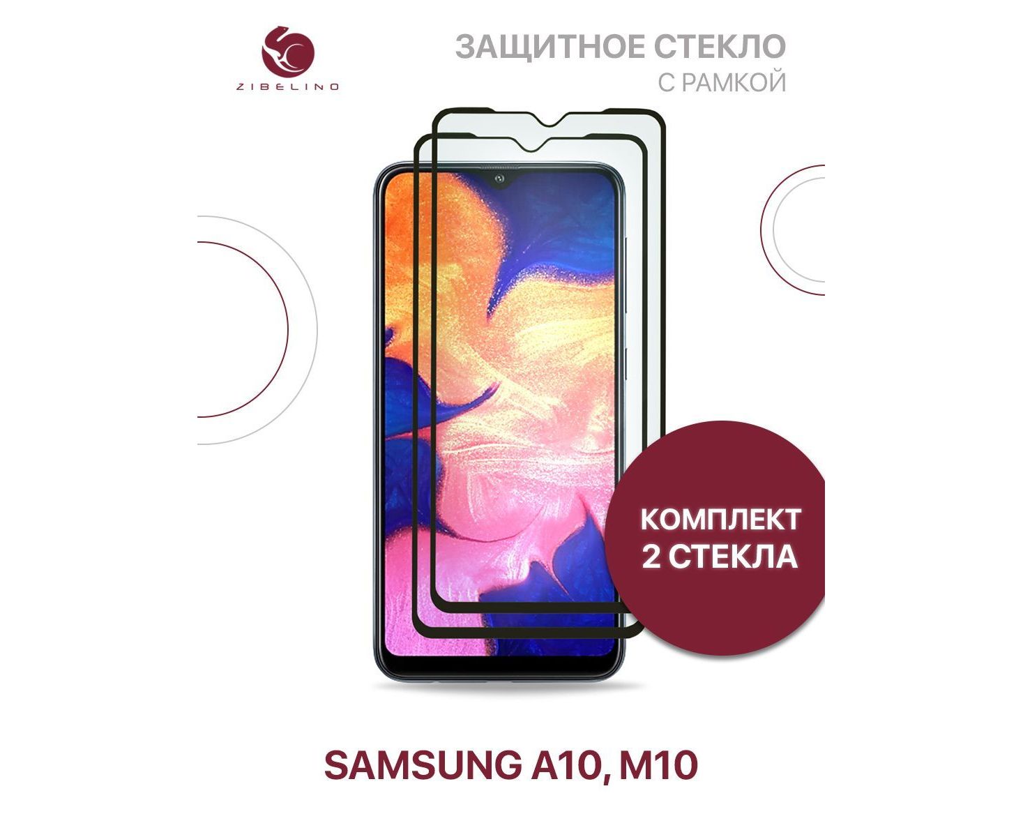 Защитное стекло (Комплект 2 шт) для Samsung Galaxy A10, A10s, M10 с рамкой (Самсунг Галакси А10 А10s М10)