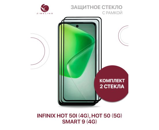 Защитное стекло ( 2 шт ) для Infinix Hot 50i (4G), Hot 50 (5G), Infinix Smart 9 (4G) с черной рамкой (Инфиникс Хот 50, Инфиникс Хот 50i, Инфиникс Смарт 9)