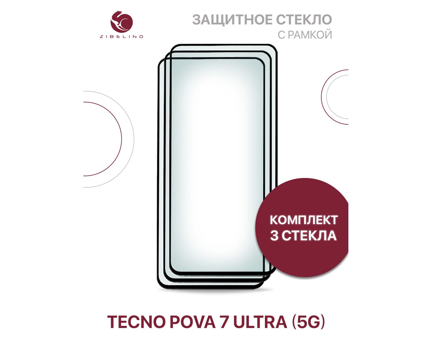 Защитное стекло (Комплект из 3 шт) для Tecno Pova 7 Ultra (5G) с рамкой (Текно Пова 7 Ультра)