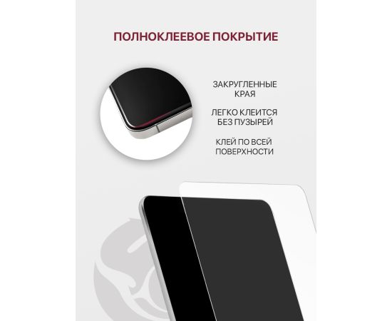 Защитное стекло для Samsung Galaxy Tab S10 FE Plus (13.1") (SM-X620, SM-X626B) предназначено для защиты экрана планшета от воздействия внешних факторов: от царапин, сколов, пыли, истирания, разводов, следов отпечатков пальцев. Клеевая поверхность "полный клей" обеспечивает надежную полноценную сцепку стекла для планшета Samsung Galaxy Tab S10FE Plus с дисплеем, что делает его чувствительным ко всем прикосновениям и не затрудняет работу на планшете. Специальная технология производства защитного стекла на планшет Самсунг Таб S10 FE Плюс дает возможность качественно и надежно покрывать всю поверхность экрана, не преломляя и не искажая передаваемое изображение по сравнению с обычными стеклами. Олеофобное покрытие защитного стекла Самсунг Таб S10 FE Плюс обеспечивает дополнительную защиту от отпечатков пальцев и жирных пятен. Стекло имеет максимальную степень прозрачности и не искажает изображение, качество фотоснимков или видео. Качественная клеевая основа, нанесенная на всю поверхность, предотвратит появление разводов и воздушных пузырей, что облегчает самостоятельную установку защитного стекла Самсунг Галакси Таб S10 FE Plus. Каждое стекло Samsung Galaxy Tab S 10 FE Plus проверяется перед отправкой. В комплекте: защитное стекло на планшет Samsung Galaxy Tab S10 FE Плюс, влажная салфетка для обезжиривания экрана, ткань из микрофибры, стикер для удаления пыли. Изображение стекла и устройства на упаковке являются условными.