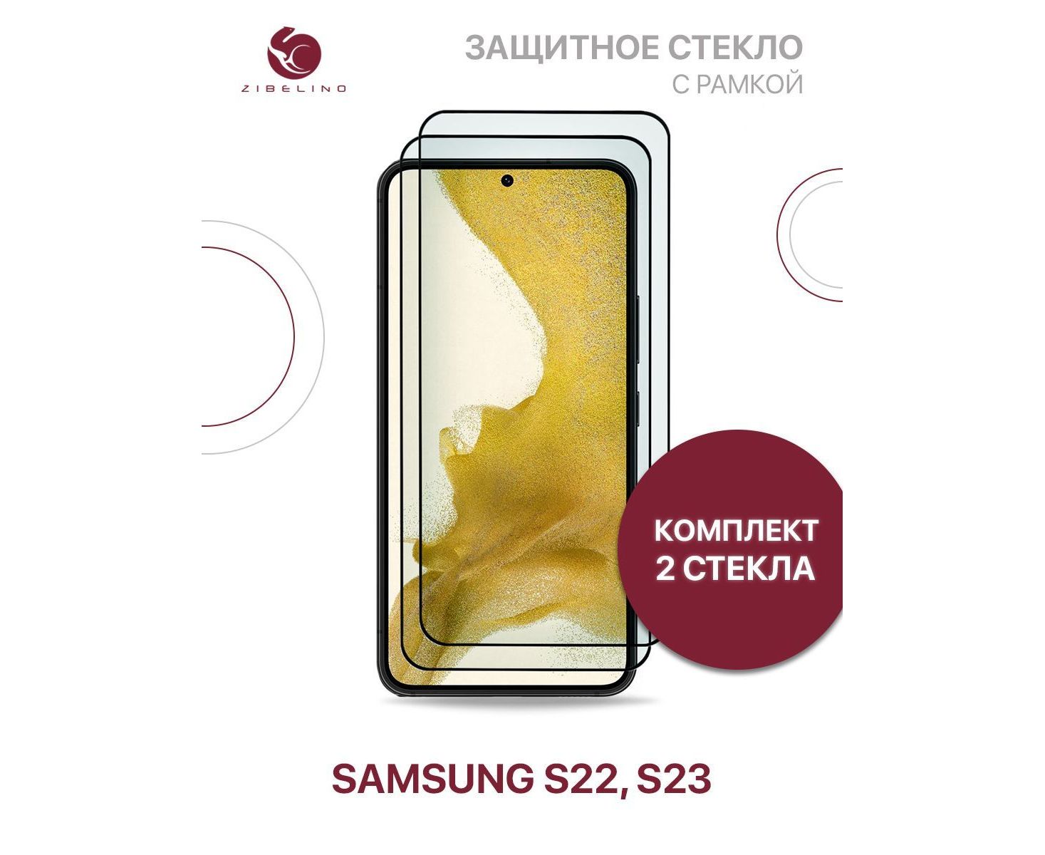 Защитное стекло Premium (Комплект 2 шт) для Samsung Galaxy S22, Samsung Galaxy S23 с рамкой, Самсунг Галакси S22 S23