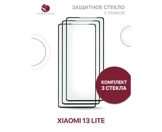 Защитное стекло Premium (Комплект 3 шт) для Xiaomi 13 Lite с рамкой, Сяоми 13 Лайт