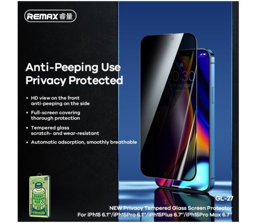 Защитное стекло REMAX NEW Privacy Tempered Glass Screen Protector GL-27 iPh 14pro 6.1