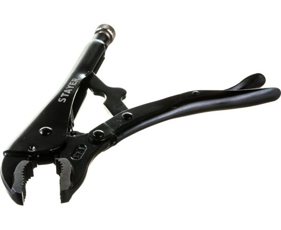 Ручной зажим выполнен из хромованадиевой стали высокого качества и имеет специальное покрытие, защищающее его от коррозии. Он используется для закрепления и удержания заготовок при сварке и прочих работах. Фиксация осуществляется при сжатии ручек до упора благодаря механизму блокировки. Регулировать усилие закрепления деталей можно с помощью специального винта. Поверхность губок закалена для долгого срока службы.