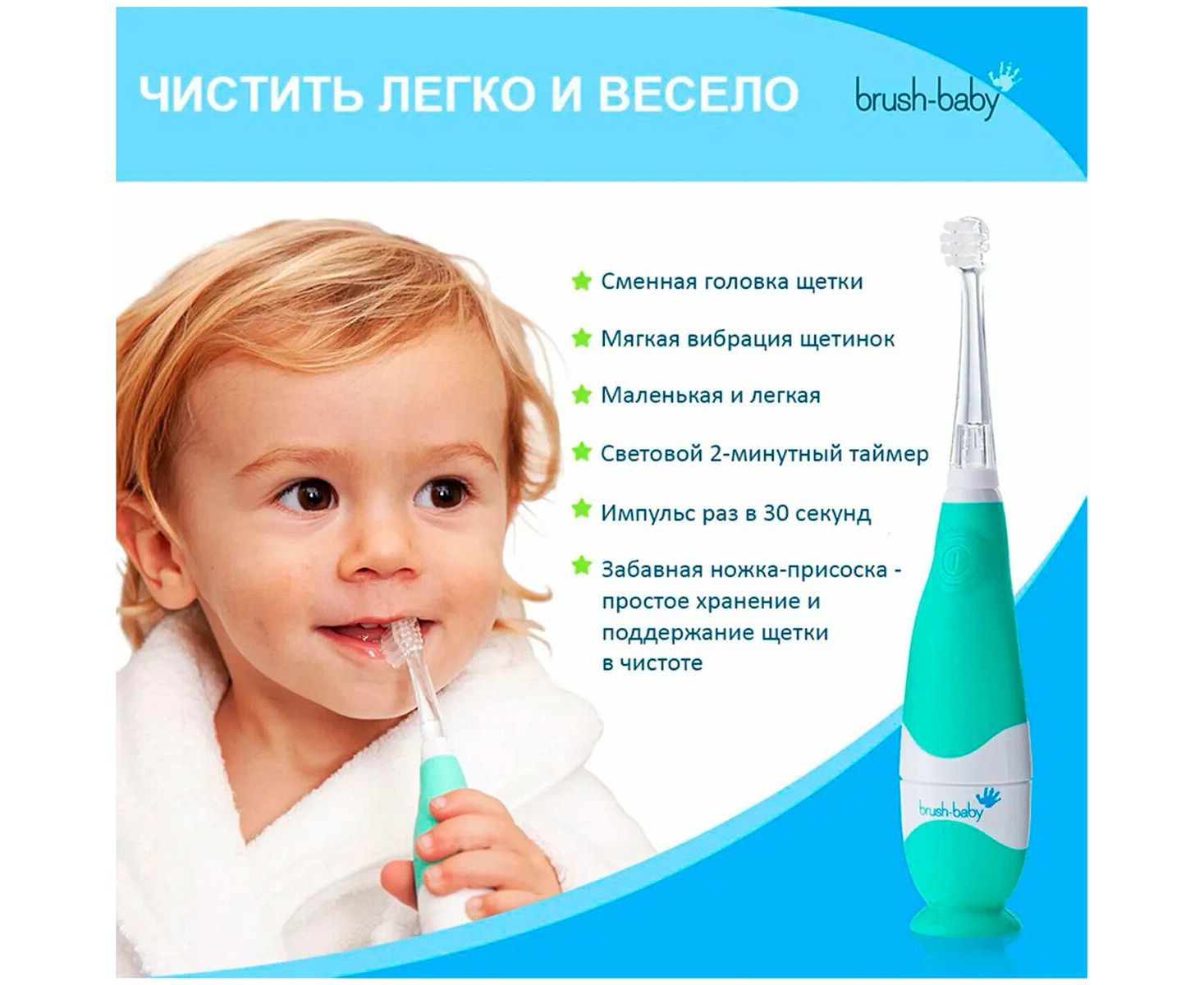 Звуковая зубная щетка Brush-Baby BabySonic BRB051 бирюзовая